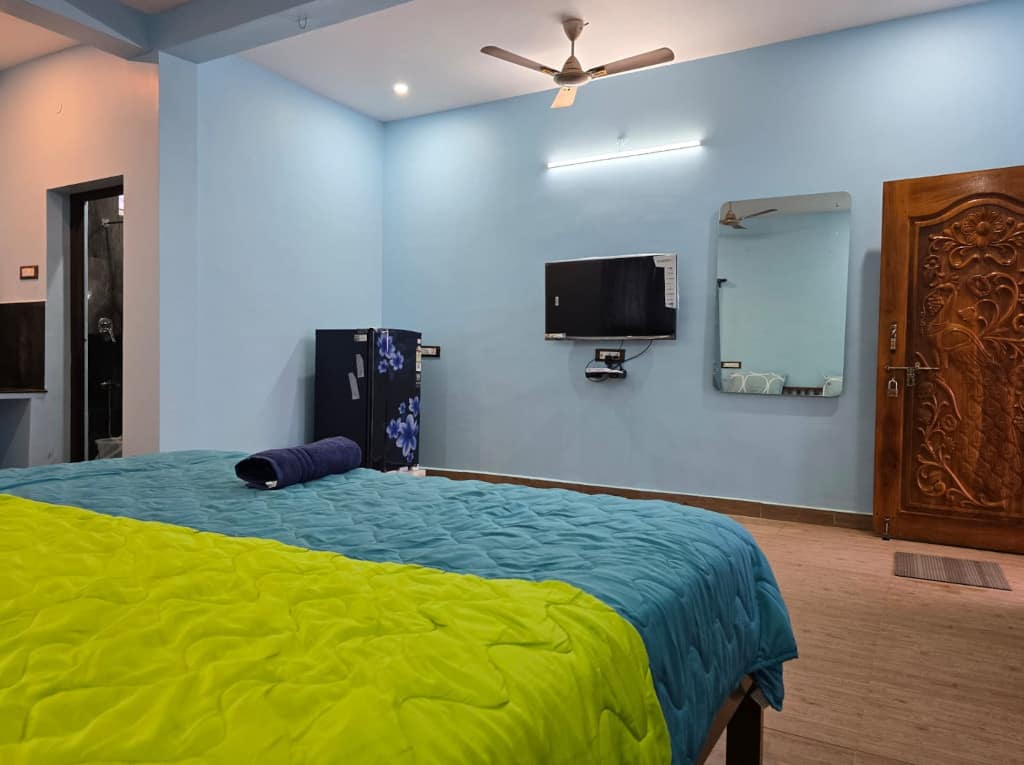 Our guest house features four comfortable rooms in two sizes, offering a quiet and welcoming place to stay. All rooms include air conditioning, fan, WiFi and a television, making them suitable for both short visits and longer stays in Mahabalipuram.